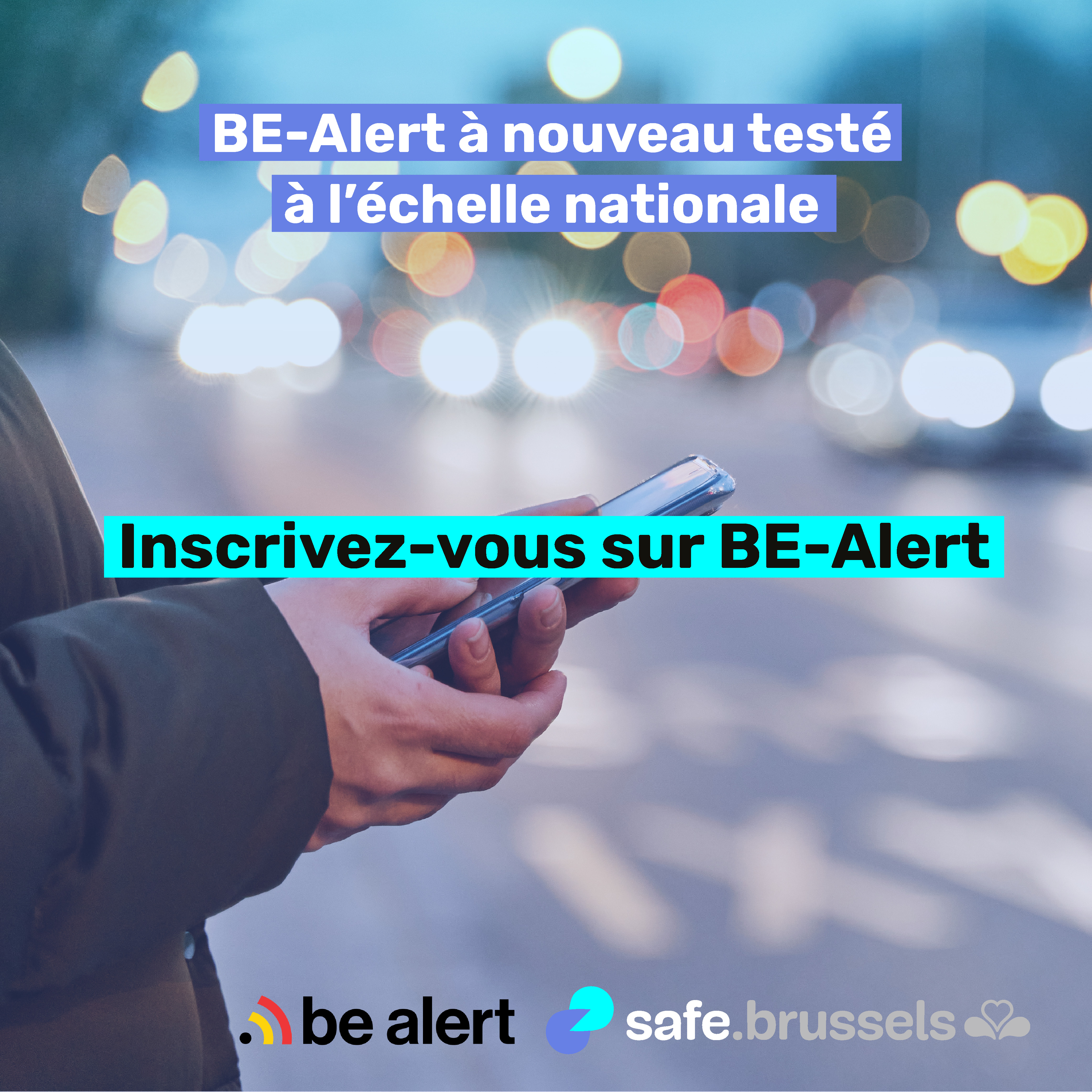 Cela permet également de sensibiliser la population à l’importance de se préparer à être informé en cas de situations d’urgence. Nous vous encourageons à vous inscrire ou mettre à jour vos données sur BE-Alert via le site www.be-alert.be