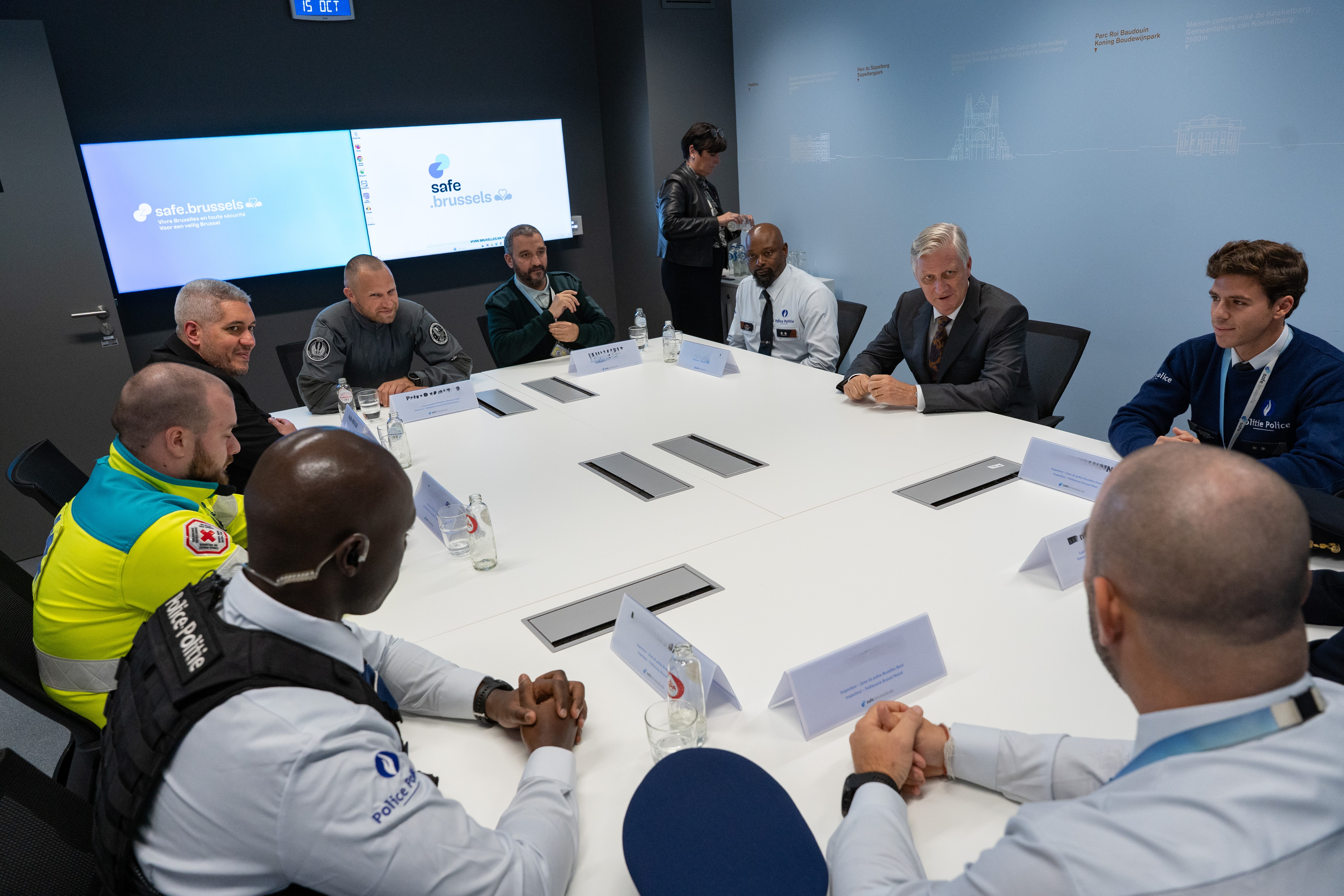 Met de wens om beter inzicht te krijgen in de uitdagingen op het vlak van preventie en veiligheid in het Brussels Hoofdstedelijk Gewest, vroeg de Vorst aan safe.brussels om een ontmoeting te organiseren met de mensen die op het terrein actief zijn. De Koning kon er in gesprek gaan met vertegenwoordigers van verschillende nood- en interventiediensten, evenals van de Brusselse administraties. Onder de vertegenwoordigde diensten bevonden zich onder meer medewerkers van Net Brussel, Leefmilieu Brussel, de lokale en federale politie, de Brusselse brandweer en het Belgische Rode Kruis.