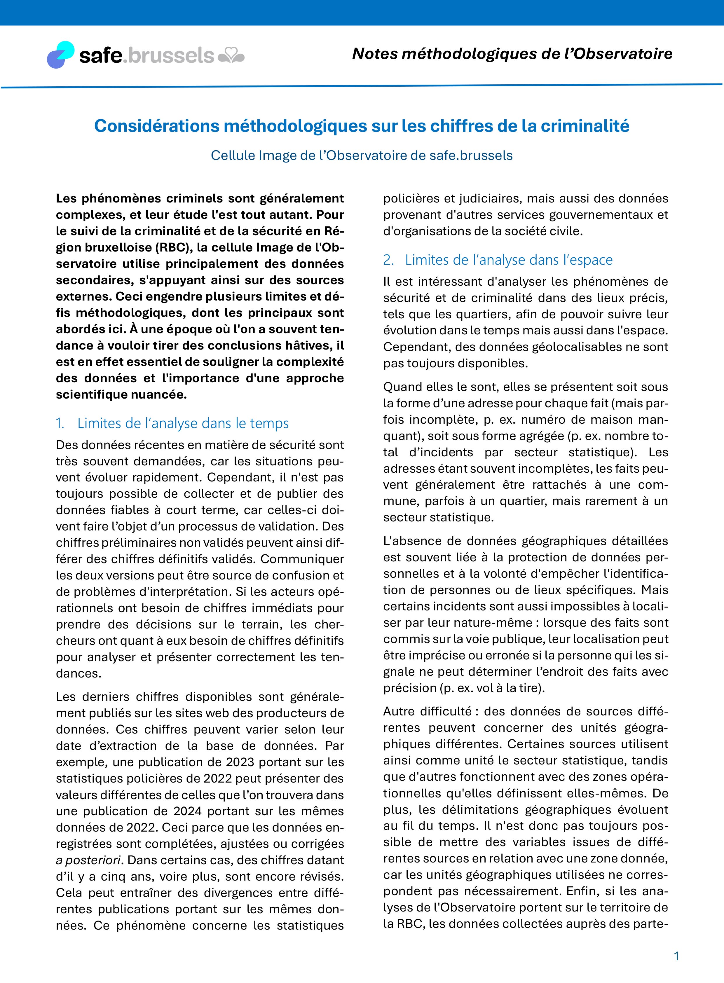 Notes méthodologiques de l’Observatoire #1 : Considérations méthodologiques sur les chiffres de la criminalité